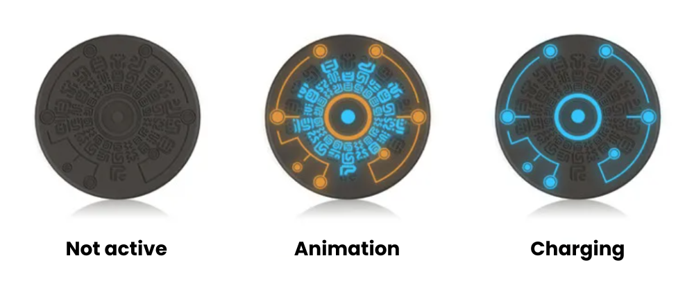 The animation activates just like a Sheikah Tower: when you place your phone on top, it detects it, displays the light and sound effect, and then charging begins